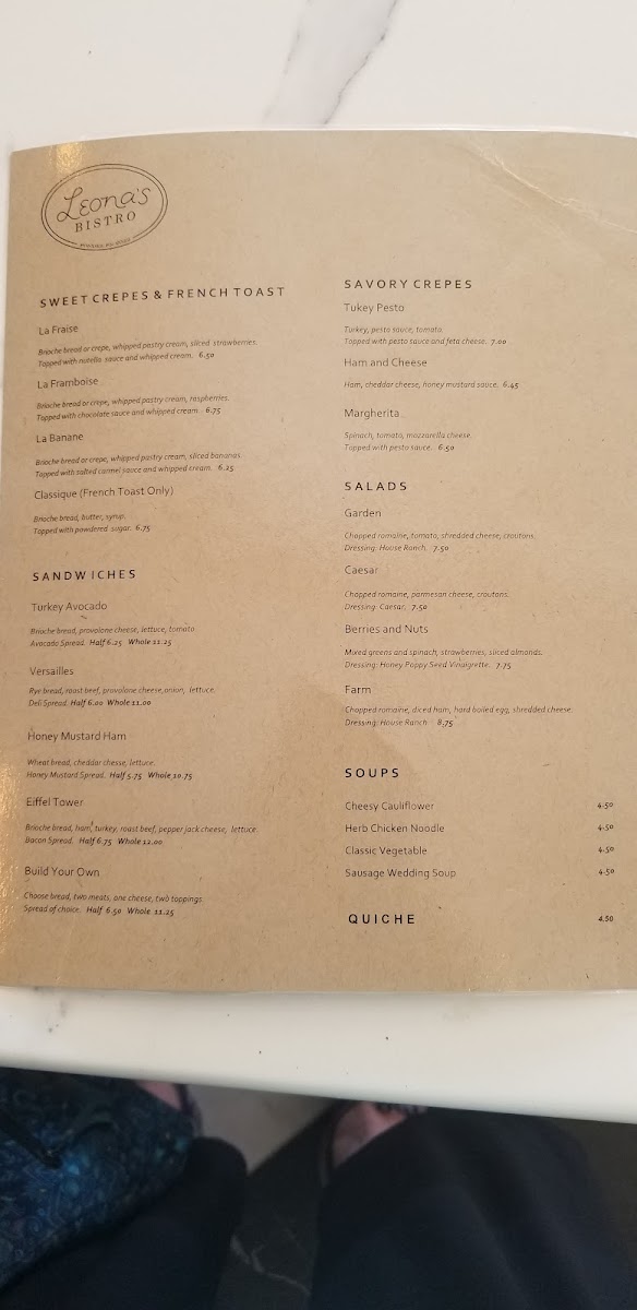 Leona's Bistro Menu